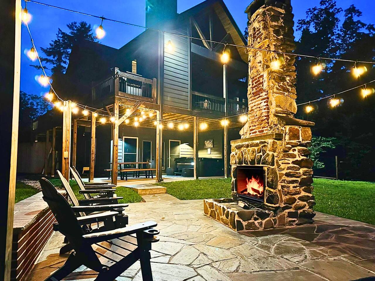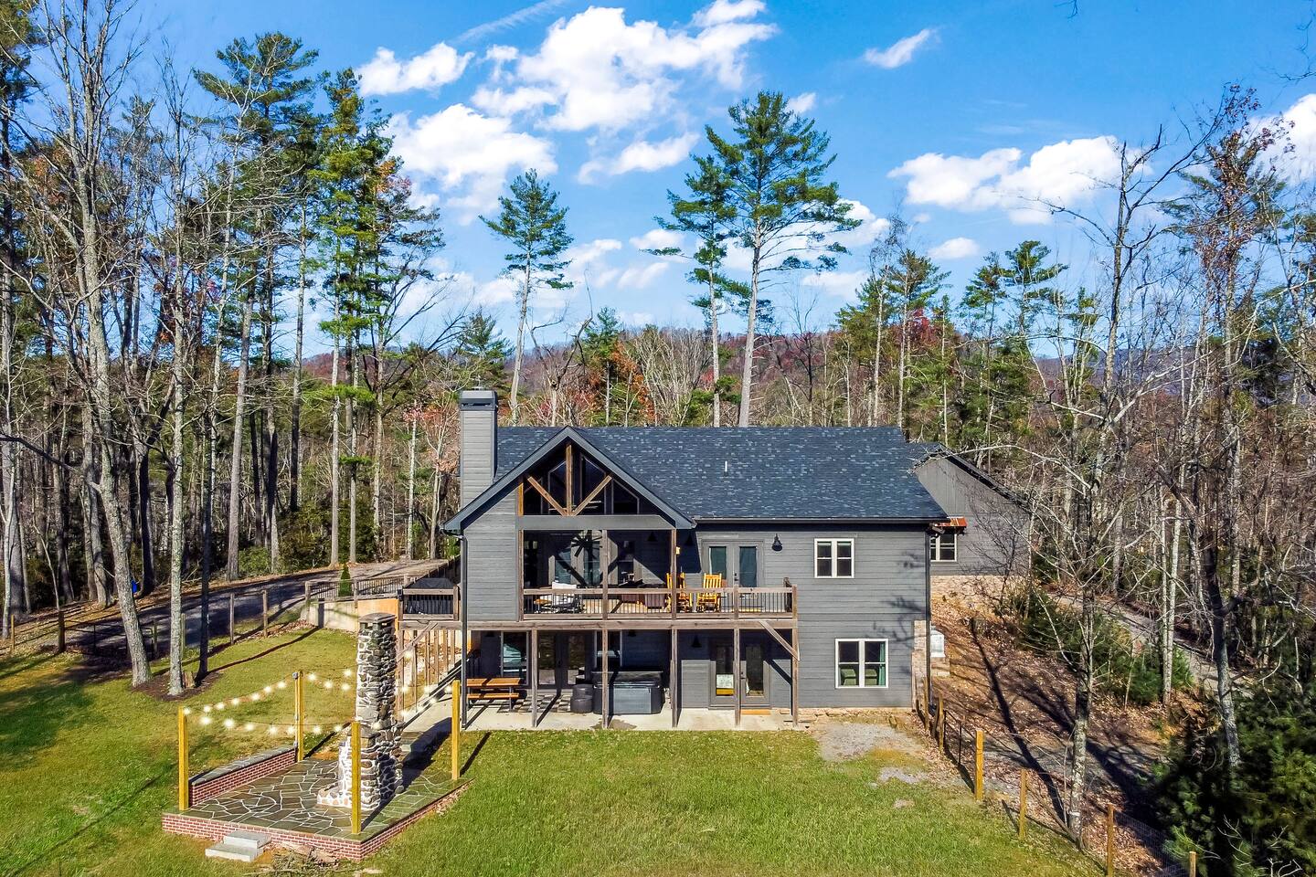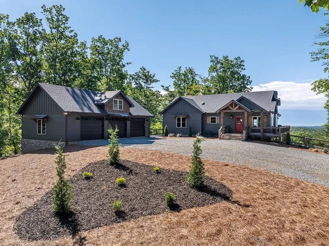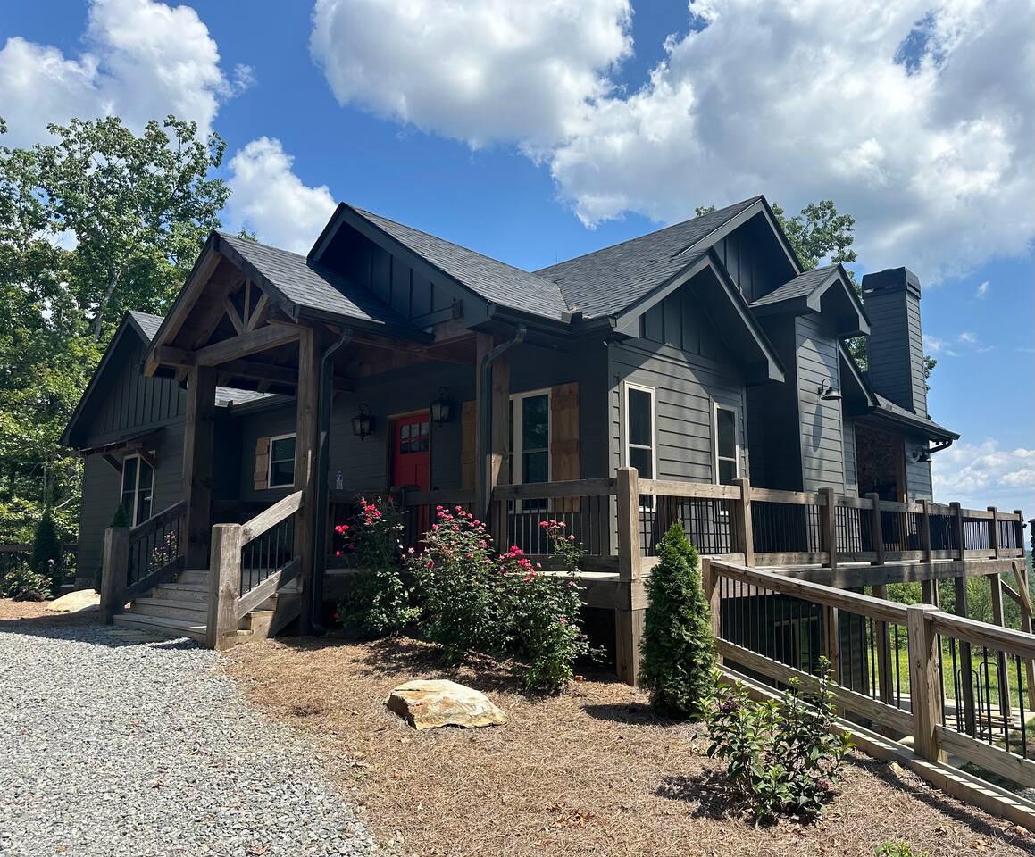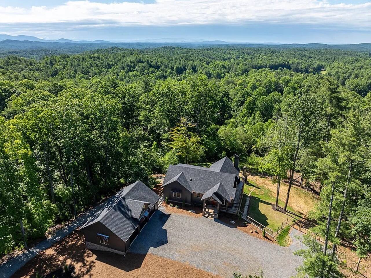 HOME HIGHLIGHTS ⭐️ GORGEOUS MOUNTAIN VIEWS ⭐️SUPER FAMILY FRIENDLY ⭐️ HOT TUB ⭐️ ARCADE GAMES ⭐️ 1 INDOOR FIREPLACE-1 OUTDOOR FIREPLACE + FIRE-PIT WITH A FUN MOONSHINE HISTORY ⭐️ PRIVATE FEEL BUT STILL 15 MINUTES TO DOWNTOWN ELLIJAY ⭐️ 2 COFFEE BARS & A COCKTAIL BAR AMENITIES 👾Arcade games 🎲Board games, life sized games & outdoor games ☕️ Keurig & drip coffee makers upstairs & downstairs! 🍷 Wine Fridge 🍳Propane Cooktop & Grill 🛜Free high speed WiFI 👩🍳Fully stocked kitchen ❄️Central heating & air conditioning 📺Smart TV's in both living spaces & primary bedroom 🧺Washer & Dryer 🚗Ample private parking, gated driveway 🔌Whole home backup generator 🏡Built in 2022! KITCHEN & DINING The spacious chef’s kitchen on the main level features a gas range and is is fully equipped with all the essentials you need to create delicious meals. The dining table comfortably seats 8, and the breakfast bar offers additional seating with 3 stools. Head downstairs to our kitchenette with an additional coffee bar, cocktail bar, fridge, and wine fridge. CrockPot -Kid friendly cups and dinnerware - 4 slot toaster - Pots/Pans/Baking sheets/Muffin tins - Blender - Mixing Bowls - Tupperware - Wine glasses - Cocktail shaker - Cleaning Products and so much more! ☕️Drip or Keurig pods with a variety of blends, flavors, creamers and sugars. -Tea is also available if that's your preference! LIVING AREA If one living area isn’t enough, how about two? Upstairs, enjoy seating for 7 around a cozy gas fireplace. Open the double doors to take in fresh mountain air and stunning views. The open floor plan makes it the perfect space to relax, entertain, and connect with loved ones. The downstairs living area offers seating for 6 on a cozy leather couch. Not in the mood for TV? Fire up the arcade games for some friendly competition! This space also features bunk beds, and double doors that open to the backyard with a hot tub, fire pit, and life-sized games. *Please note our downstairs fireplace is not operational.* BEDROOMS & BATHROOMS All bedrooms are equipped with brand new pillow top mattresses and offer extra pillows & blankets for added comfort, inside the closets. Our upstairs primary bedroom and downstairs king bedroom both offer smart TV's. **Please note, the bunk beds are in our downstairs living room which does not have a door separating the downstairs kitchenette and living room. There is a door from upstairs to downstairs though! Each bathroom comes with all the comforts needed: -Hair Dryer -Shampoo, Conditioner & Body Wash -Towels: Bath, Soft Hair Towels, Makeup, Hand & Washcloths OUTDOOR SPACE Step into a backyard full of charm and adventure! Relax in the hot tub or gather around the 1920s firepit, a relic from an old moonshine maker (firewood not supplied). Enjoy life-sized games in the expansive, fenced-in yard, perfect for fun-filled afternoons. Venture beyond to explore 7 acres of serene wooded land where you won't see a neighbor in site — your own private slice of nature. NEARBY ATTRACTIONS ✨Downtown Ellijay-15 mins ✨Cartecay River Experience-15 mins ✨R & A Orchards -15 mins ✨Hillcrest Orchards -15 mins ✨Fort Mountain State Park-15 mins ✨B.J. Reece Orchards-20 mins ✨Cartecay Vineyards-20 mins ✨Expedition: Bigfoot Museum -20 mins ✨Red Apple Barn-20 mins ✨Mountain Valley Farm Store -25 mins ✨Engelheim Vineyards-25 mins ✨Carters Lake-30 mins ✨Blue Ridge-30 mins ✨Tumblin’ Waters Trail-30 mins ✨Amicalola Falls State Park-35 mins ✨Springer Mountain-40 mins