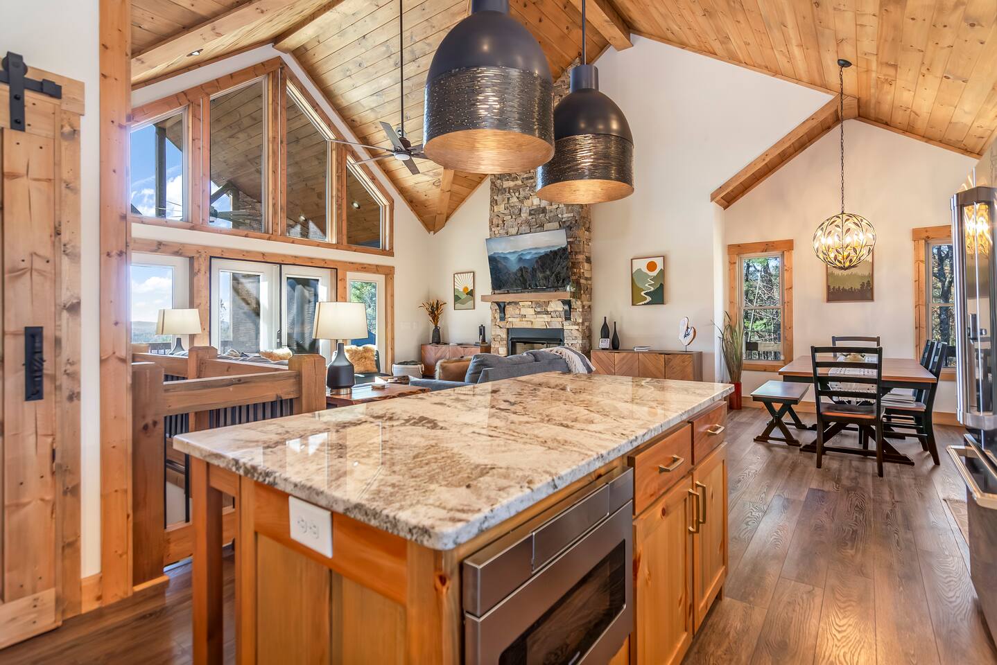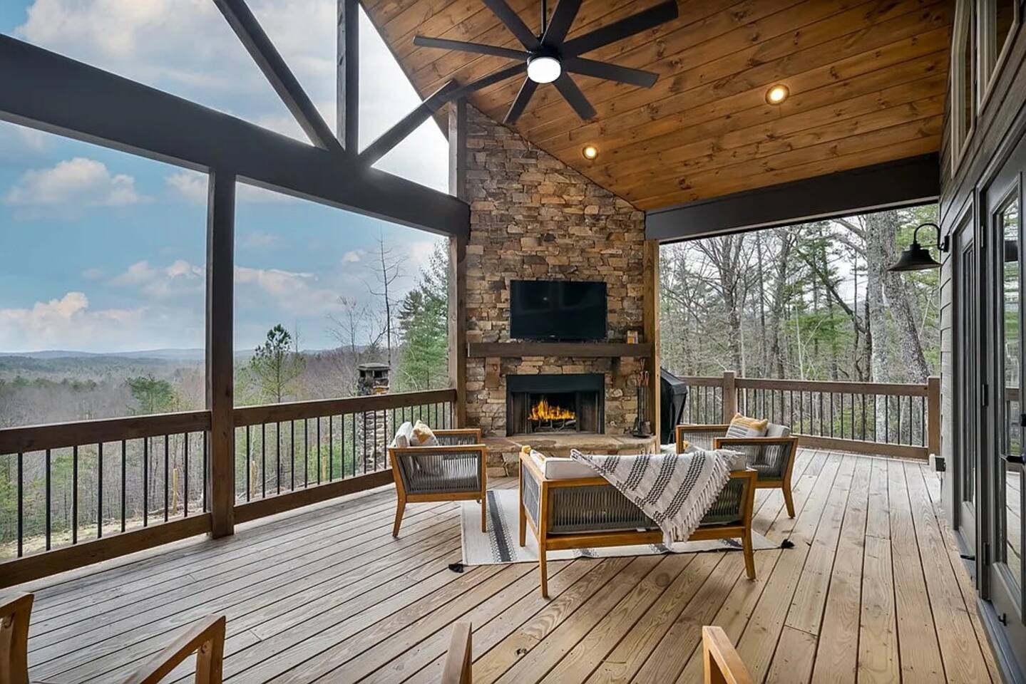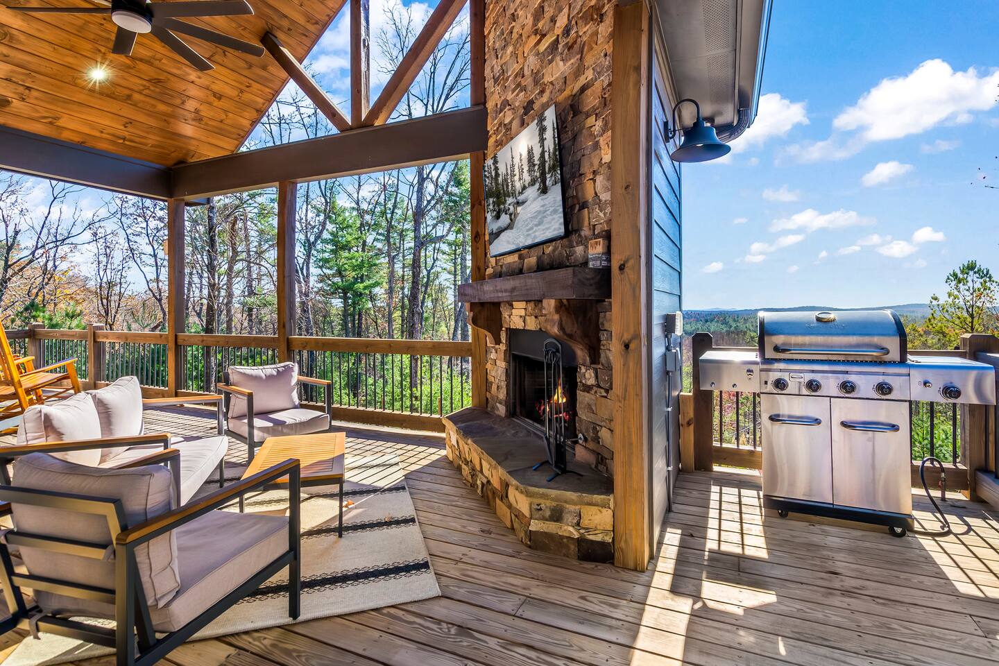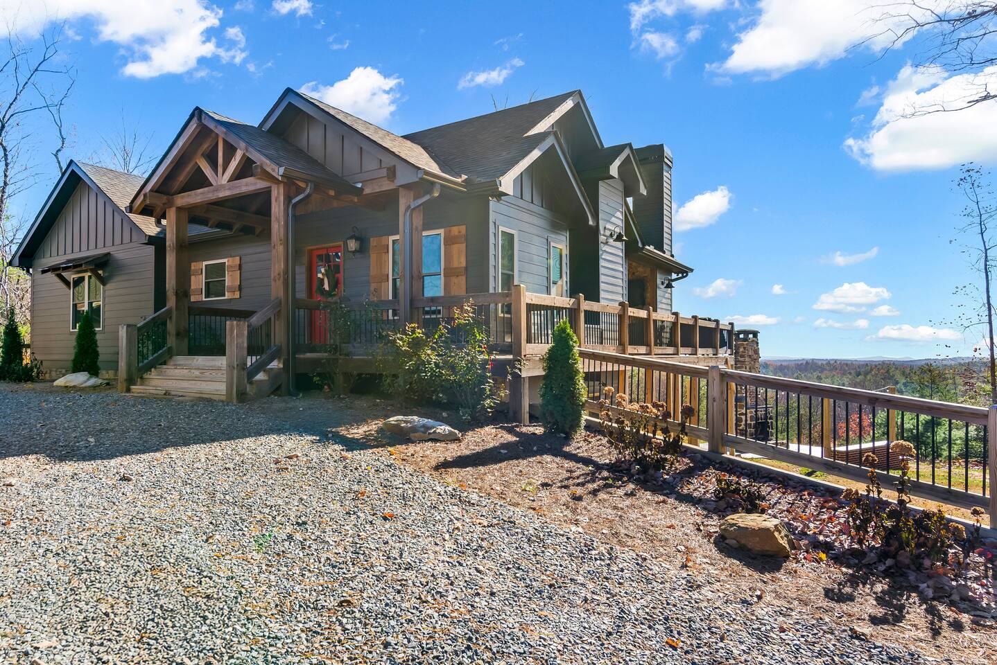 HOME HIGHLIGHTS ⭐️ GORGEOUS MOUNTAIN VIEWS ⭐️SUPER FAMILY FRIENDLY ⭐️ HOT TUB ⭐️ ARCADE GAMES ⭐️ 1 INDOOR FIREPLACE-1 OUTDOOR FIREPLACE + FIRE-PIT WITH A FUN MOONSHINE HISTORY ⭐️ PRIVATE FEEL BUT STILL 15 MINUTES TO DOWNTOWN ELLIJAY ⭐️ 2 COFFEE BARS & A COCKTAIL BAR AMENITIES 👾Arcade games 🎲Board games, life sized games & outdoor games ☕️ Keurig & drip coffee makers upstairs & downstairs! 🍷 Wine Fridge 🍳Propane Cooktop & Grill 🛜Free high speed WiFI 👩🍳Fully stocked kitchen ❄️Central heating & air conditioning 📺Smart TV's in both living spaces & primary bedroom 🧺Washer & Dryer 🚗Ample private parking, gated driveway 🔌Whole home backup generator 🏡Built in 2022! KITCHEN & DINING The spacious chef’s kitchen on the main level features a gas range and is is fully equipped with all the essentials you need to create delicious meals. The dining table comfortably seats 8, and the breakfast bar offers additional seating with 3 stools. Head downstairs to our kitchenette with an additional coffee bar, cocktail bar, fridge, and wine fridge. CrockPot -Kid friendly cups and dinnerware - 4 slot toaster - Pots/Pans/Baking sheets/Muffin tins - Blender - Mixing Bowls - Tupperware - Wine glasses - Cocktail shaker - Cleaning Products and so much more! ☕️Drip or Keurig pods with a variety of blends, flavors, creamers and sugars. -Tea is also available if that's your preference! LIVING AREA If one living area isn’t enough, how about two? Upstairs, enjoy seating for 7 around a cozy gas fireplace. Open the double doors to take in fresh mountain air and stunning views. The open floor plan makes it the perfect space to relax, entertain, and connect with loved ones. The downstairs living area offers seating for 6 on a cozy leather couch. Not in the mood for TV? Fire up the arcade games for some friendly competition! This space also features bunk beds, and double doors that open to the backyard with a hot tub, fire pit, and life-sized games. *Please note our downstairs fireplace is not operational.* BEDROOMS & BATHROOMS All bedrooms are equipped with brand new pillow top mattresses and offer extra pillows & blankets for added comfort, inside the closets. Our upstairs primary bedroom and downstairs king bedroom both offer smart TV's. **Please note, the bunk beds are in our downstairs living room which does not have a door separating the downstairs kitchenette and living room. There is a door from upstairs to downstairs though! Each bathroom comes with all the comforts needed: -Hair Dryer -Shampoo, Conditioner & Body Wash -Towels: Bath, Soft Hair Towels, Makeup, Hand & Washcloths OUTDOOR SPACE Step into a backyard full of charm and adventure! Relax in the hot tub or gather around the 1920s firepit, a relic from an old moonshine maker (firewood not supplied). Enjoy life-sized games in the expansive, fenced-in yard, perfect for fun-filled afternoons. Venture beyond to explore 7 acres of serene wooded land where you won't see a neighbor in site — your own private slice of nature. NEARBY ATTRACTIONS ✨Downtown Ellijay-15 mins ✨Cartecay River Experience-15 mins ✨R & A Orchards -15 mins ✨Hillcrest Orchards -15 mins ✨Fort Mountain State Park-15 mins ✨B.J. Reece Orchards-20 mins ✨Cartecay Vineyards-20 mins ✨Expedition: Bigfoot Museum -20 mins ✨Red Apple Barn-20 mins ✨Mountain Valley Farm Store -25 mins ✨Engelheim Vineyards-25 mins ✨Carters Lake-30 mins ✨Blue Ridge-30 mins ✨Tumblin’ Waters Trail-30 mins ✨Amicalola Falls State Park-35 mins ✨Springer Mountain-40 mins