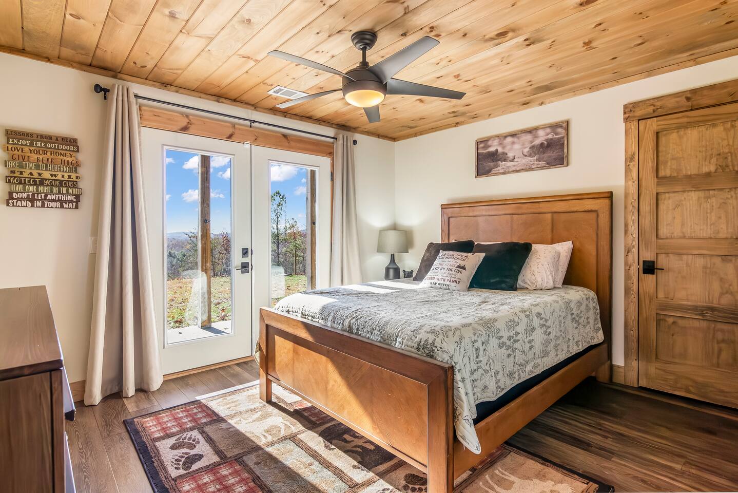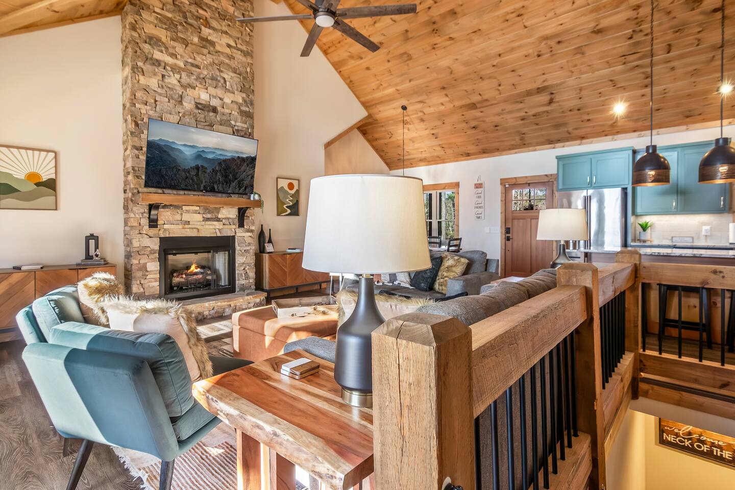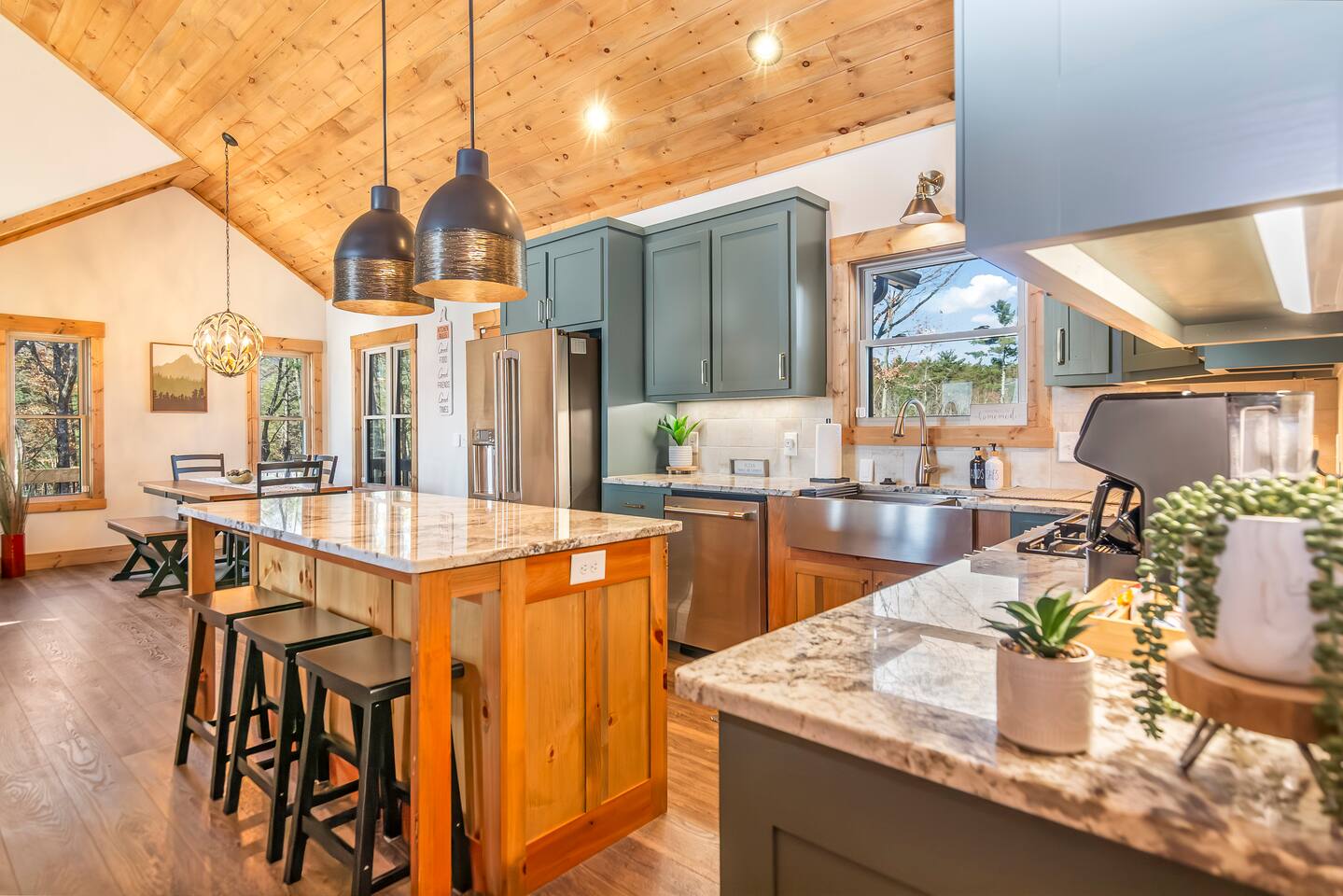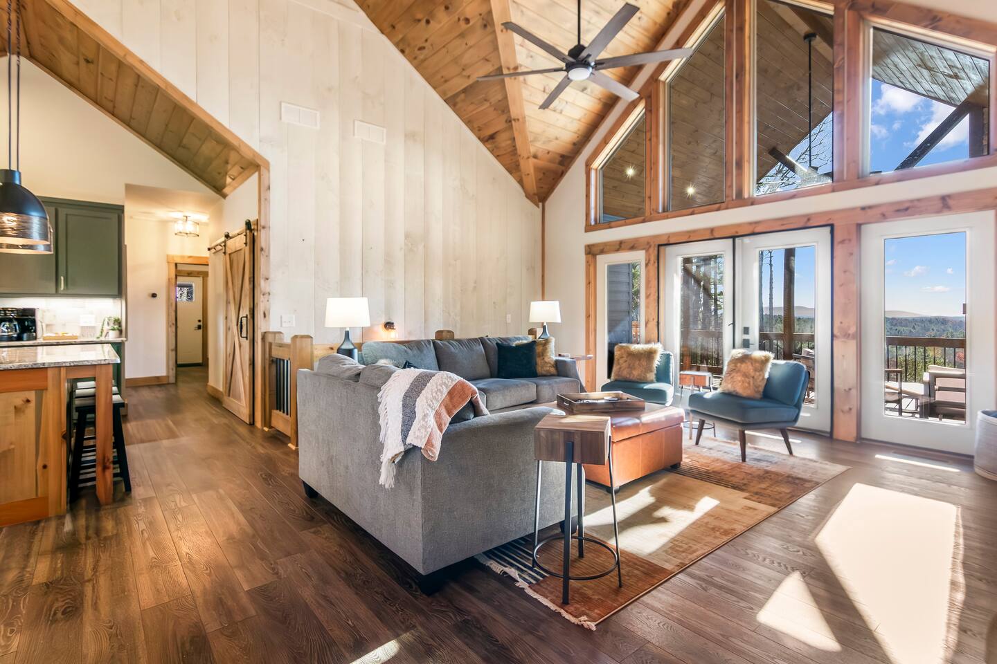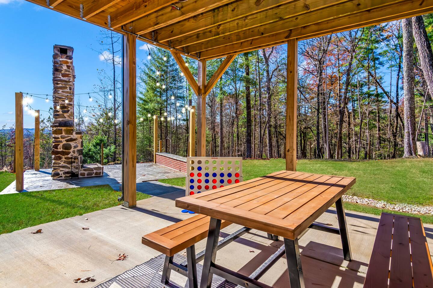 HOME HIGHLIGHTS ⭐️ GORGEOUS MOUNTAIN VIEWS ⭐️SUPER FAMILY FRIENDLY ⭐️ HOT TUB ⭐️ ARCADE GAMES ⭐️ 1 INDOOR FIREPLACE-1 OUTDOOR FIREPLACE + FIRE-PIT WITH A FUN MOONSHINE HISTORY ⭐️ PRIVATE FEEL BUT STILL 15 MINUTES TO DOWNTOWN ELLIJAY ⭐️ 2 COFFEE BARS & A COCKTAIL BAR AMENITIES 👾Arcade games 🎲Board games, life sized games & outdoor games ☕️ Keurig & drip coffee makers upstairs & downstairs! 🍷 Wine Fridge 🍳Propane Cooktop & Grill 🛜Free high speed WiFI 👩🍳Fully stocked kitchen ❄️Central heating & air conditioning 📺Smart TV's in both living spaces & primary bedroom 🧺Washer & Dryer 🚗Ample private parking, gated driveway 🔌Whole home backup generator 🏡Built in 2022! KITCHEN & DINING The spacious chef’s kitchen on the main level features a gas range and is is fully equipped with all the essentials you need to create delicious meals. The dining table comfortably seats 8, and the breakfast bar offers additional seating with 3 stools. Head downstairs to our kitchenette with an additional coffee bar, cocktail bar, fridge, and wine fridge. CrockPot -Kid friendly cups and dinnerware - 4 slot toaster - Pots/Pans/Baking sheets/Muffin tins - Blender - Mixing Bowls - Tupperware - Wine glasses - Cocktail shaker - Cleaning Products and so much more! ☕️Drip or Keurig pods with a variety of blends, flavors, creamers and sugars. -Tea is also available if that's your preference! LIVING AREA If one living area isn’t enough, how about two? Upstairs, enjoy seating for 7 around a cozy gas fireplace. Open the double doors to take in fresh mountain air and stunning views. The open floor plan makes it the perfect space to relax, entertain, and connect with loved ones. The downstairs living area offers seating for 6 on a cozy leather couch. Not in the mood for TV? Fire up the arcade games for some friendly competition! This space also features bunk beds, and double doors that open to the backyard with a hot tub, fire pit, and life-sized games. *Please note our downstairs fireplace is not operational.* BEDROOMS & BATHROOMS All bedrooms are equipped with brand new pillow top mattresses and offer extra pillows & blankets for added comfort, inside the closets. Our upstairs primary bedroom and downstairs king bedroom both offer smart TV's. **Please note, the bunk beds are in our downstairs living room which does not have a door separating the downstairs kitchenette and living room. There is a door from upstairs to downstairs though! Each bathroom comes with all the comforts needed: -Hair Dryer -Shampoo, Conditioner & Body Wash -Towels: Bath, Soft Hair Towels, Makeup, Hand & Washcloths OUTDOOR SPACE Step into a backyard full of charm and adventure! Relax in the hot tub or gather around the 1920s firepit, a relic from an old moonshine maker (firewood not supplied). Enjoy life-sized games in the expansive, fenced-in yard, perfect for fun-filled afternoons. Venture beyond to explore 7 acres of serene wooded land where you won't see a neighbor in site — your own private slice of nature. NEARBY ATTRACTIONS ✨Downtown Ellijay-15 mins ✨Cartecay River Experience-15 mins ✨R & A Orchards -15 mins ✨Hillcrest Orchards -15 mins ✨Fort Mountain State Park-15 mins ✨B.J. Reece Orchards-20 mins ✨Cartecay Vineyards-20 mins ✨Expedition: Bigfoot Museum -20 mins ✨Red Apple Barn-20 mins ✨Mountain Valley Farm Store -25 mins ✨Engelheim Vineyards-25 mins ✨Carters Lake-30 mins ✨Blue Ridge-30 mins ✨Tumblin’ Waters Trail-30 mins ✨Amicalola Falls State Park-35 mins ✨Springer Mountain-40 mins