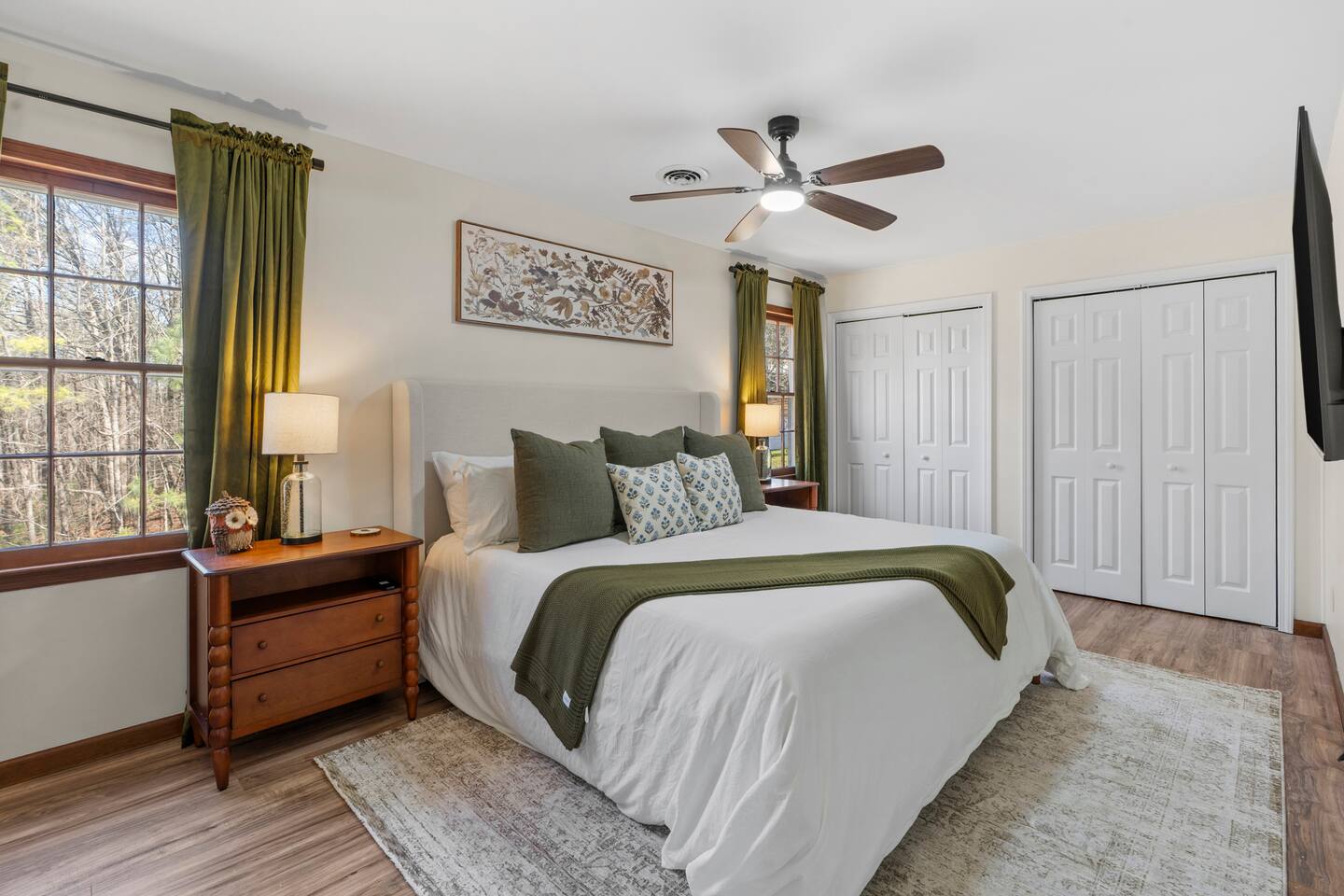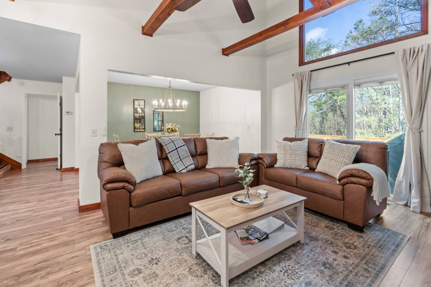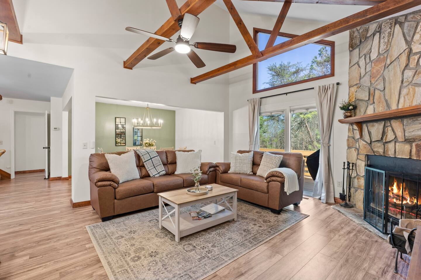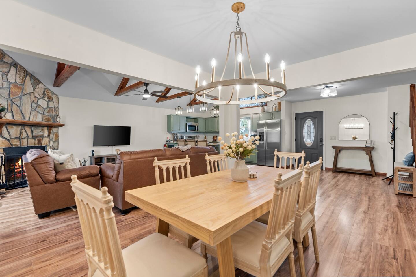 AMENITIES @ OWL & EMBER ⭐️Free access to all of Coosawatee River Resort's Amenites! (INDOOR POOL OPEN ALL YEAR!) 👶Family Friendly 🔥 Wood Burning Fireplace 🍔 Propane Grill ☕️ Keurig & drip coffee maker 🛜High speed WiFi 👩🍳Fully stocked kitchen 📺3 Smart TV's 🧺Washer & Dryer 💼Desk and Comfy Office Chair LIVING ROOM: -Smart TV -Woodburning fireplace for those cozy winter days -Games for all ages! KITCHEN & DINING: - Keurig and a drip coffee maker and a hot cocoa bar! -4 burner propane stovetop with griddle -Fully stocked so you can whip up your favorite home cooked meal -Dining table for 6 with 3 additional chairs at the kitchen island -Hot Water Kettle--Toaster--Kids Dinnerware--Blender--Wine Glasses--Cleaning Products--Food Containers--Ceramic Dining Set--Slow Cooker--Rice Cooker--Measuring Cups--Mixing Bowls--Baking Pans--Muffin Tin--and so much more! SLEEPING ARRANGEMENTS: *Main Floor-No stairs required! --King bed with ensuite bathroom with a walk in shower and double vanity (laundry is also in this room), smart TV & corner wardrobe *Upstairs: --King bed with desk workspace, smart TV & two closets --Two twin beds with closet BATHROOMS: We supply bath towels, hand towels, makeup towels, a hair dryer, shampoo, conditioner and body wash in both bathrooms. Main level bathroom: --Walk in shower --Double Vanity --Hair dryer Upstairs bathroom: --Tub/Shower combo --Double Vanity --Hair dryer **Upstairs bathroom is in the hallway and shared by the upstairs King & Twin bedroom. OUTDOOR SPACE: Grill out and enjoy a meal on our private back porch overlooking the beautiful greenery and small creek running through our backyard. **Parking space for 2 cars. COOSAWATEE RIVER RESORT: 5,500 acre resort with jam packed amenities: Indoor heated pool (OPEN ALL YEAR!), two outdoor pools (OPEN MEMORIAL-LABOR DAY), river access for tubing and kayaking, stocked fishing pond (fishing license required), fitness center, tennis courts, pickleball courts, basketball courts, mini golf course, game room with arcade and pool tables, picnic areas with grills, playgrounds, dog park, nature trails, 24/7 gated security, on-site general store, clubhouse lounge areas, scheduled activities and events. NEARBY ATTRACTIONS ✨Grapes and Ladders Vineyard-6 mins ✨Engelheim Vineyards-9 mins ✨Carters Lake-15 mins ✨Boat Ramp @ Carters Lake-5 miles away ✨Downtown Ellijay-15 mins ✨Cartecay River Experience-15 mins ✨Red Apple Barn-17 mins ✨R & A Orchards -19 mins ✨B.J. Reece Orchards-23 mins ✨Expedition: Bigfoot Museum -23 mins ✨Hillcrest Orchards -24 mins ✨Cartecay Vineyards-24 mins ✨Mountain Valley Farm Store -24 mins ✨Blue Ridge-30 mins ✨Amicalola Falls State Park-35 mins