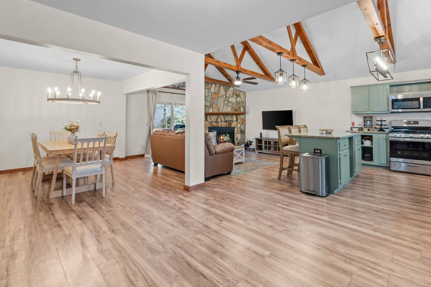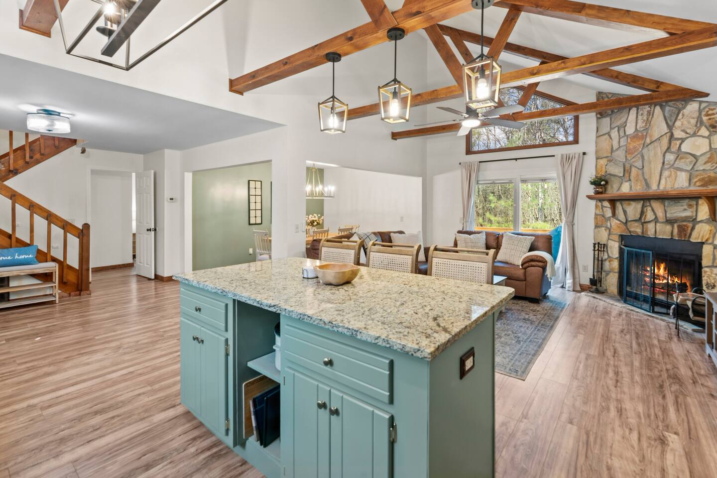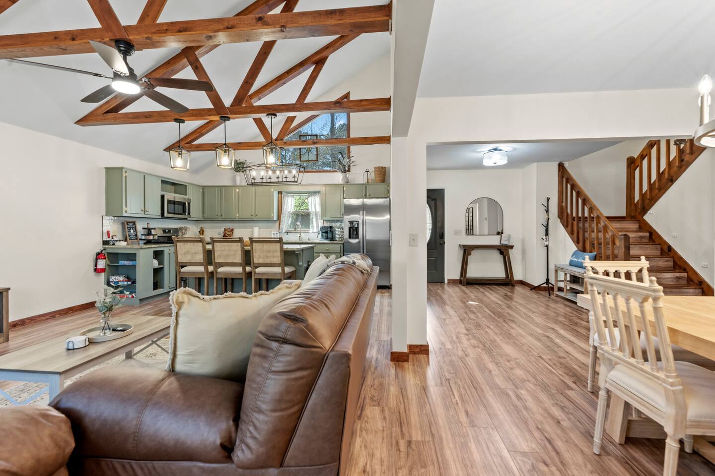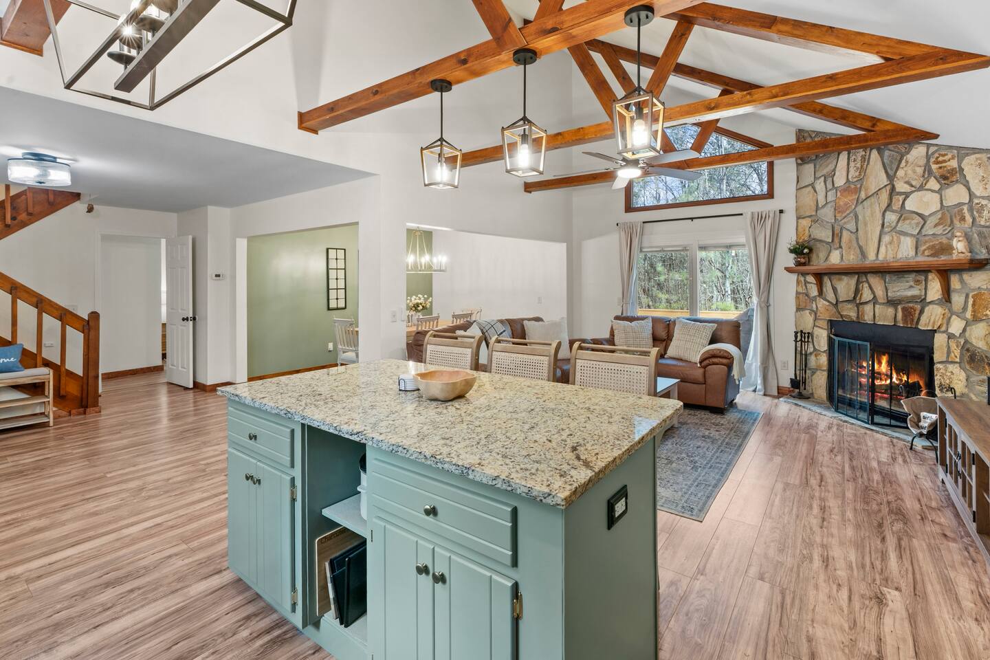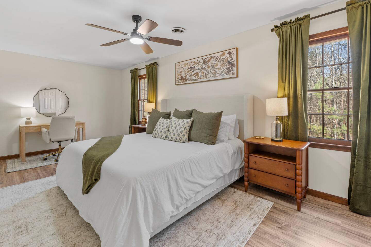 AMENITIES @ OWL & EMBER ⭐️Free access to all of Coosawatee River Resort's Amenites! (INDOOR POOL OPEN ALL YEAR!) 👶Family Friendly 🔥 Wood Burning Fireplace 🍔 Propane Grill ☕️ Keurig & drip coffee maker 🛜High speed WiFi 👩🍳Fully stocked kitchen 📺3 Smart TV's 🧺Washer & Dryer 💼Desk and Comfy Office Chair LIVING ROOM: -Smart TV -Woodburning fireplace for those cozy winter days -Games for all ages! KITCHEN & DINING: - Keurig and a drip coffee maker and a hot cocoa bar! -4 burner propane stovetop with griddle -Fully stocked so you can whip up your favorite home cooked meal -Dining table for 6 with 3 additional chairs at the kitchen island -Hot Water Kettle--Toaster--Kids Dinnerware--Blender--Wine Glasses--Cleaning Products--Food Containers--Ceramic Dining Set--Slow Cooker--Rice Cooker--Measuring Cups--Mixing Bowls--Baking Pans--Muffin Tin--and so much more! SLEEPING ARRANGEMENTS: *Main Floor-No stairs required! --King bed with ensuite bathroom with a walk in shower and double vanity (laundry is also in this room), smart TV & corner wardrobe *Upstairs: --King bed with desk workspace, smart TV & two closets --Two twin beds with closet BATHROOMS: We supply bath towels, hand towels, makeup towels, a hair dryer, shampoo, conditioner and body wash in both bathrooms. Main level bathroom: --Walk in shower --Double Vanity --Hair dryer Upstairs bathroom: --Tub/Shower combo --Double Vanity --Hair dryer **Upstairs bathroom is in the hallway and shared by the upstairs King & Twin bedroom. OUTDOOR SPACE: Grill out and enjoy a meal on our private back porch overlooking the beautiful greenery and small creek running through our backyard. **Parking space for 2 cars. COOSAWATEE RIVER RESORT: 5,500 acre resort with jam packed amenities: Indoor heated pool (OPEN ALL YEAR!), two outdoor pools (OPEN MEMORIAL-LABOR DAY), river access for tubing and kayaking, stocked fishing pond (fishing license required), fitness center, tennis courts, pickleball courts, basketball courts, mini golf course, game room with arcade and pool tables, picnic areas with grills, playgrounds, dog park, nature trails, 24/7 gated security, on-site general store, clubhouse lounge areas, scheduled activities and events. NEARBY ATTRACTIONS ✨Grapes and Ladders Vineyard-6 mins ✨Engelheim Vineyards-9 mins ✨Carters Lake-15 mins ✨Boat Ramp @ Carters Lake-5 miles away ✨Downtown Ellijay-15 mins ✨Cartecay River Experience-15 mins ✨Red Apple Barn-17 mins ✨R & A Orchards -19 mins ✨B.J. Reece Orchards-23 mins ✨Expedition: Bigfoot Museum -23 mins ✨Hillcrest Orchards -24 mins ✨Cartecay Vineyards-24 mins ✨Mountain Valley Farm Store -24 mins ✨Blue Ridge-30 mins ✨Amicalola Falls State Park-35 mins