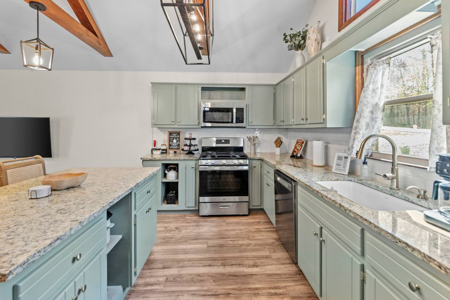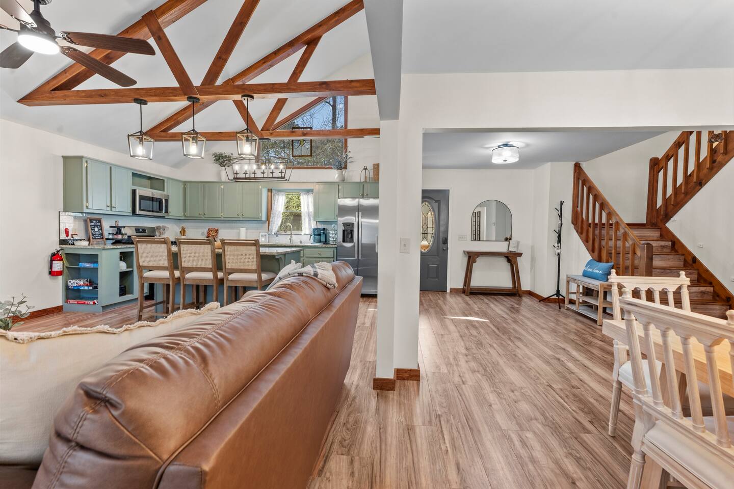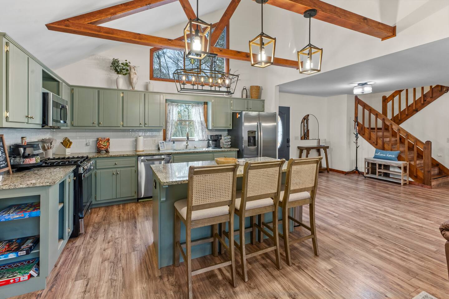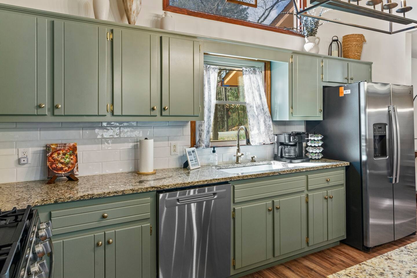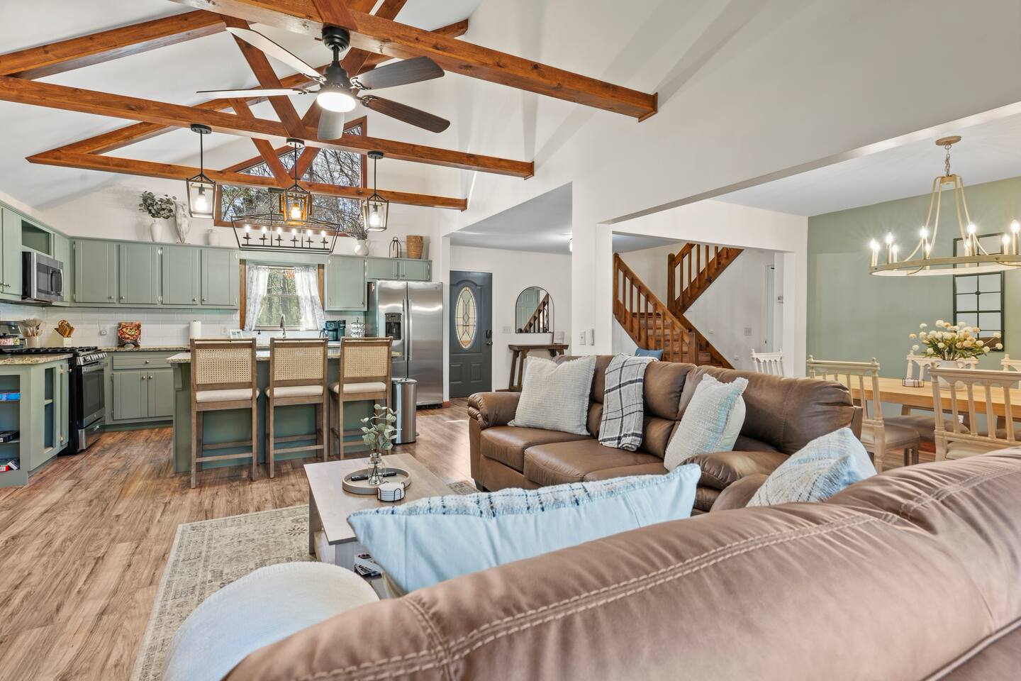 AMENITIES @ OWL & EMBER ⭐️Free access to all of Coosawatee River Resort's Amenites! (INDOOR POOL OPEN ALL YEAR!) 👶Family Friendly 🔥 Wood Burning Fireplace 🍔 Propane Grill ☕️ Keurig & drip coffee maker 🛜High speed WiFi 👩🍳Fully stocked kitchen 📺3 Smart TV's 🧺Washer & Dryer 💼Desk and Comfy Office Chair LIVING ROOM: -Smart TV -Woodburning fireplace for those cozy winter days -Games for all ages! KITCHEN & DINING: - Keurig and a drip coffee maker and a hot cocoa bar! -4 burner propane stovetop with griddle -Fully stocked so you can whip up your favorite home cooked meal -Dining table for 6 with 3 additional chairs at the kitchen island -Hot Water Kettle--Toaster--Kids Dinnerware--Blender--Wine Glasses--Cleaning Products--Food Containers--Ceramic Dining Set--Slow Cooker--Rice Cooker--Measuring Cups--Mixing Bowls--Baking Pans--Muffin Tin--and so much more! SLEEPING ARRANGEMENTS: *Main Floor-No stairs required! --King bed with ensuite bathroom with a walk in shower and double vanity (laundry is also in this room), smart TV & corner wardrobe *Upstairs: --King bed with desk workspace, smart TV & two closets --Two twin beds with closet BATHROOMS: We supply bath towels, hand towels, makeup towels, a hair dryer, shampoo, conditioner and body wash in both bathrooms. Main level bathroom: --Walk in shower --Double Vanity --Hair dryer Upstairs bathroom: --Tub/Shower combo --Double Vanity --Hair dryer **Upstairs bathroom is in the hallway and shared by the upstairs King & Twin bedroom. OUTDOOR SPACE: Grill out and enjoy a meal on our private back porch overlooking the beautiful greenery and small creek running through our backyard. **Parking space for 2 cars. COOSAWATEE RIVER RESORT: 5,500 acre resort with jam packed amenities: Indoor heated pool (OPEN ALL YEAR!), two outdoor pools (OPEN MEMORIAL-LABOR DAY), river access for tubing and kayaking, stocked fishing pond (fishing license required), fitness center, tennis courts, pickleball courts, basketball courts, mini golf course, game room with arcade and pool tables, picnic areas with grills, playgrounds, dog park, nature trails, 24/7 gated security, on-site general store, clubhouse lounge areas, scheduled activities and events. NEARBY ATTRACTIONS ✨Grapes and Ladders Vineyard-6 mins ✨Engelheim Vineyards-9 mins ✨Carters Lake-15 mins ✨Boat Ramp @ Carters Lake-5 miles away ✨Downtown Ellijay-15 mins ✨Cartecay River Experience-15 mins ✨Red Apple Barn-17 mins ✨R & A Orchards -19 mins ✨B.J. Reece Orchards-23 mins ✨Expedition: Bigfoot Museum -23 mins ✨Hillcrest Orchards -24 mins ✨Cartecay Vineyards-24 mins ✨Mountain Valley Farm Store -24 mins ✨Blue Ridge-30 mins ✨Amicalola Falls State Park-35 mins